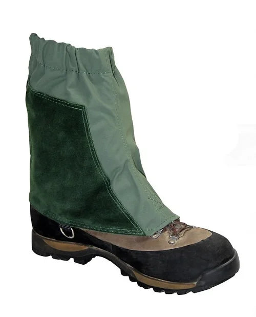 A durable, leather lined boot shaped puttee with dome and velcro fastening at the back, also features hook on front and dee's on the side.